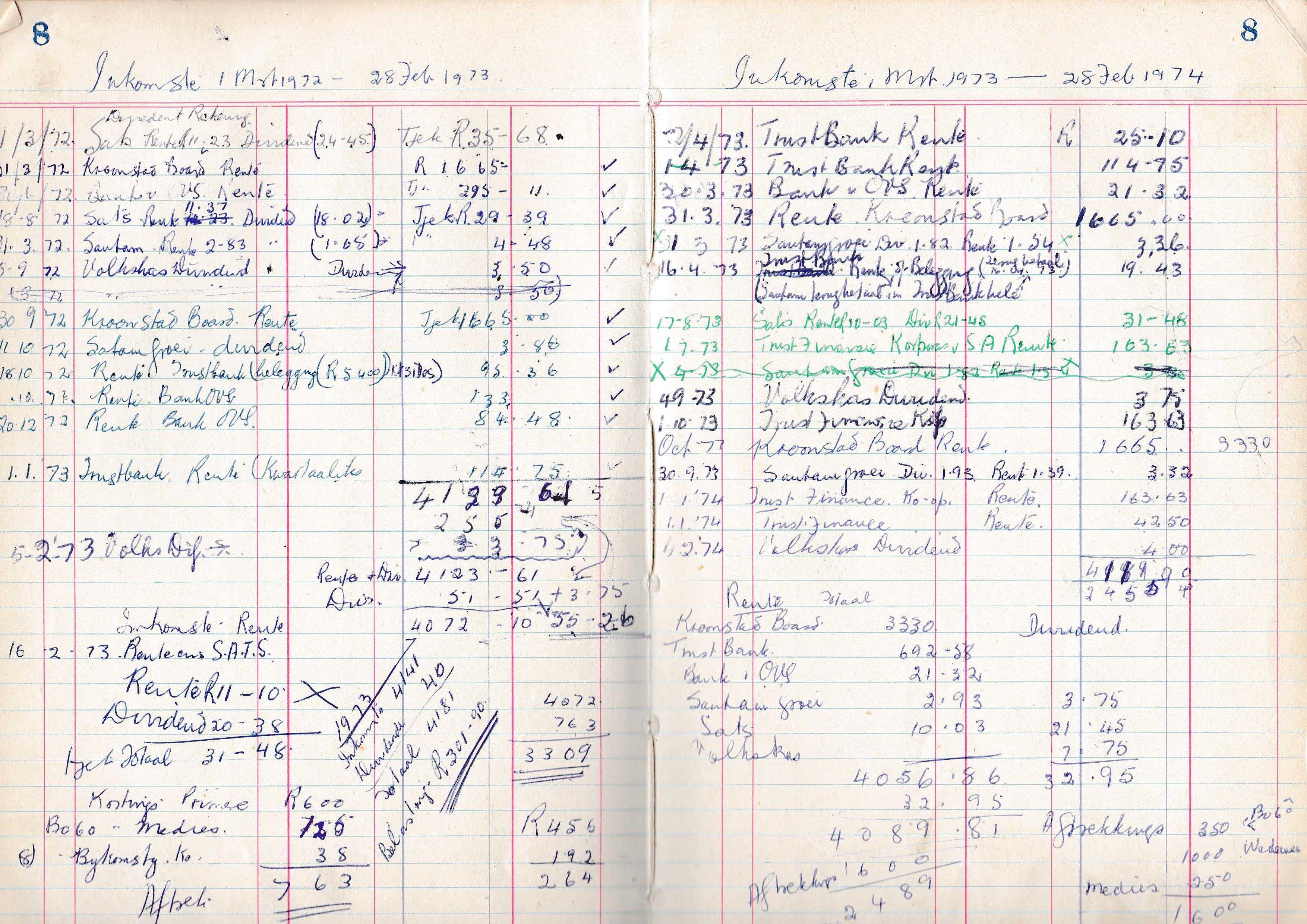 Ek wonder of die tuin met sy vrugtebome nog daar is. Ek onthou hoe ek buite in die skaduwee van ’n vrugteboom geleer het vir die st 8-eindeksamen. En die heerlike stoep waar ons so lekker gekuier het. En saans in die eetkamer met die groot lamp het almal sit en lees in Die Huisgenoot of Die Jongspan.